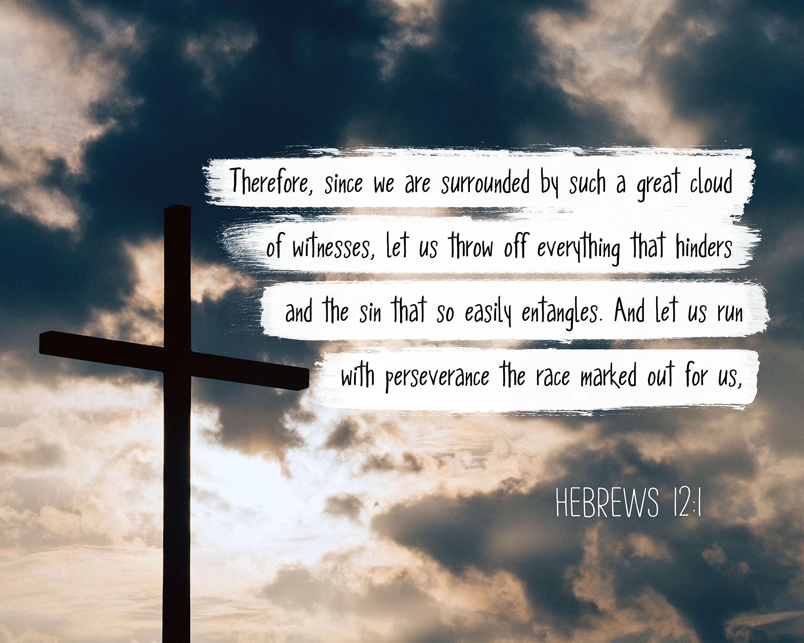 Amazon Com Hebrews 12 1 Let Us Run With Perseverance Christian Poster Print Picture Or Framed Wall Art Decor Bible Verse Collection Religious Gift For Holidays Christmas Baptism 8x10 Unframed Photo